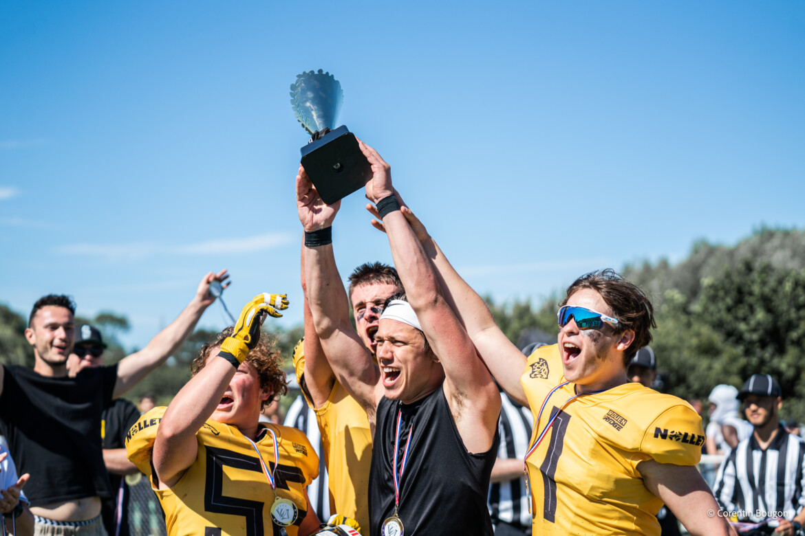 Le 24 juin 2023 s’est déroulé la finale nationale D2. Les Léopards de Rouen ont défié les Corsaires d’Évry. C’est devant un public de plus de 700 spectateurs et avec un score de 21 à 0 que les Léopards ont remporté le titre dechampions de France !